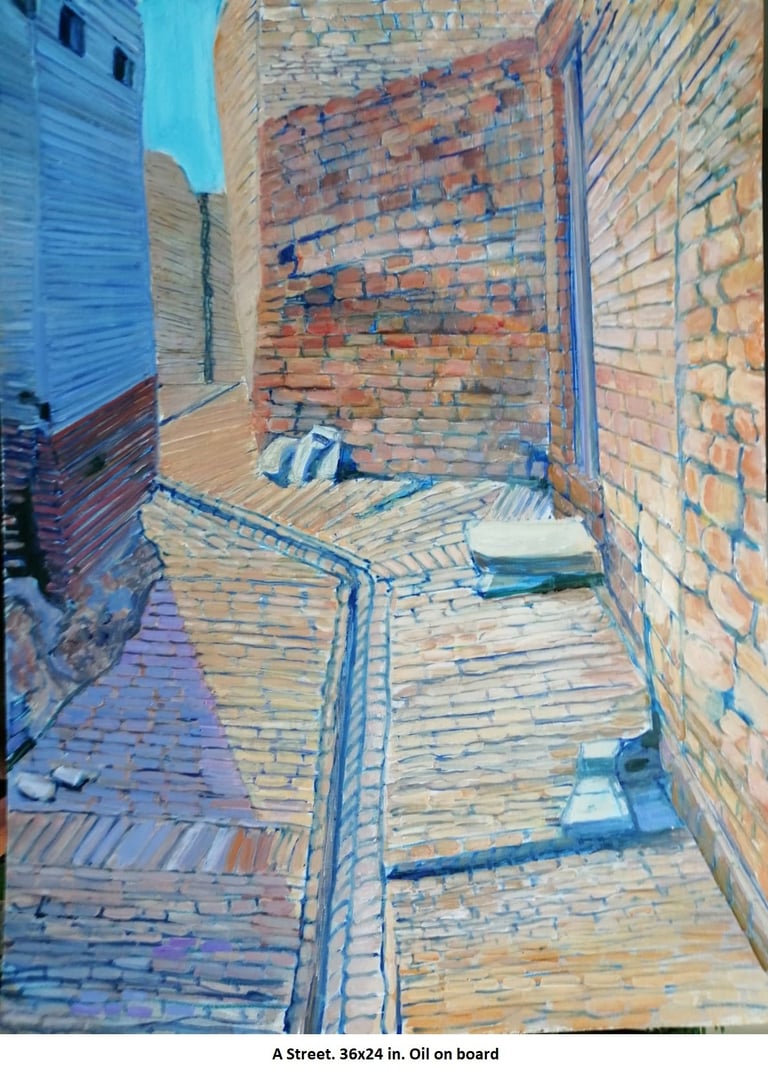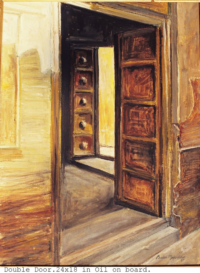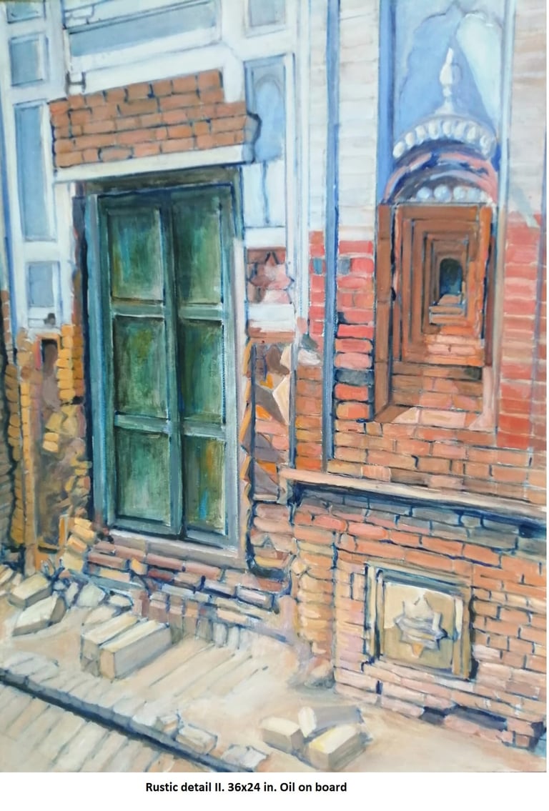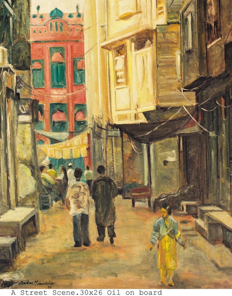 This genre has a special appeal for the artist since his native Pakpattan is an ancient city. Derelict structures, ruins of once graceful houses abound. The high quality craftsmanship still stands out even in their crumbling state.
